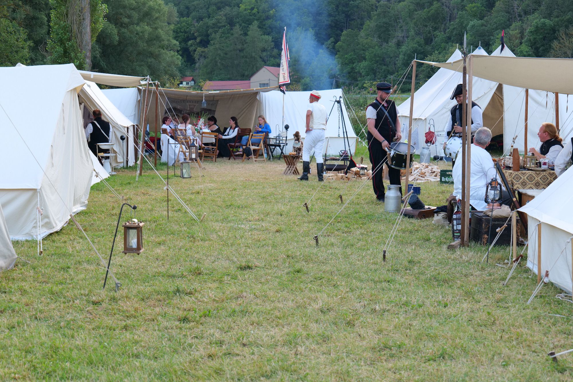 Wie bereits in den Vergangenen Jahren wurden wir auch dieses Jahr wieder für das Urlaubsbiwak in Thalwinkel, nach Burgscheidungen eingeladen. Ein sehr entspanntes und schönes Wochenende für Groß und Klein. Die Tage sind mit vielen kleinen Höhepunkten durchgeplant. Das Requirieren im Dorf wird stehts als gesellige Tätigkeit aufgenommen und wir wurden in Zahlreichen Höfen zum essen, trinken und verweilen eingeladen. Mein persönlicher Höhepunkt ist hier stehts das Artilleriesalut einmal zum Mittag, zum Abend und dann in der Nacht.