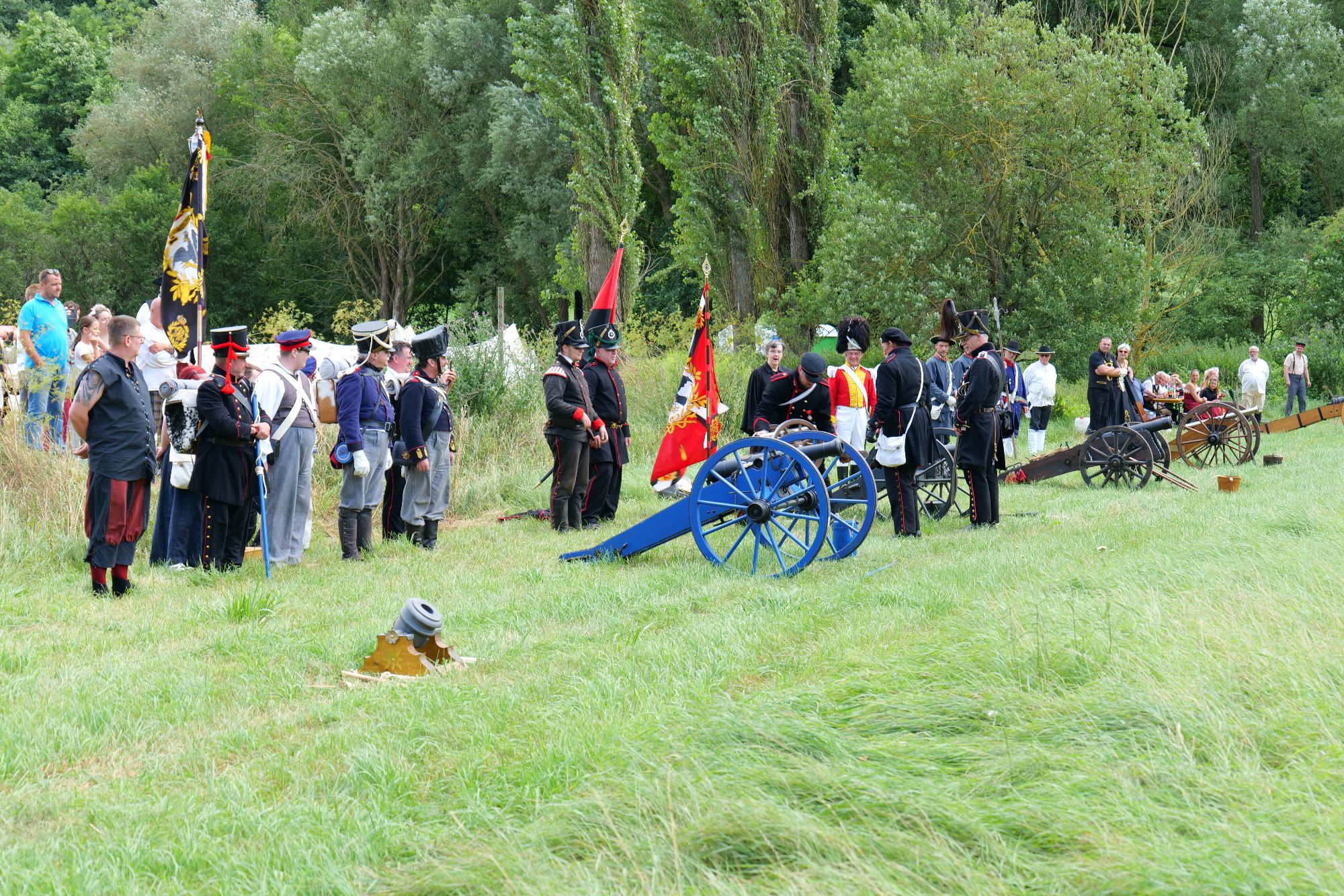 In diesem Jahr, war das Wetter sehr wechselhaft. Es wurde kein Umzug durch die Gemeinde geführt, aber wir haben uns selber einen eigenen Umzug durch Tautenhain organisiert. Diesmal wurde der Fokus mehr auf das Biwakleben und die Artillerie gelegt. Wir hatten 5 kleine Geschütze mit, welche wir in einer Darstellung für die Gäste erklärten und vorführten.